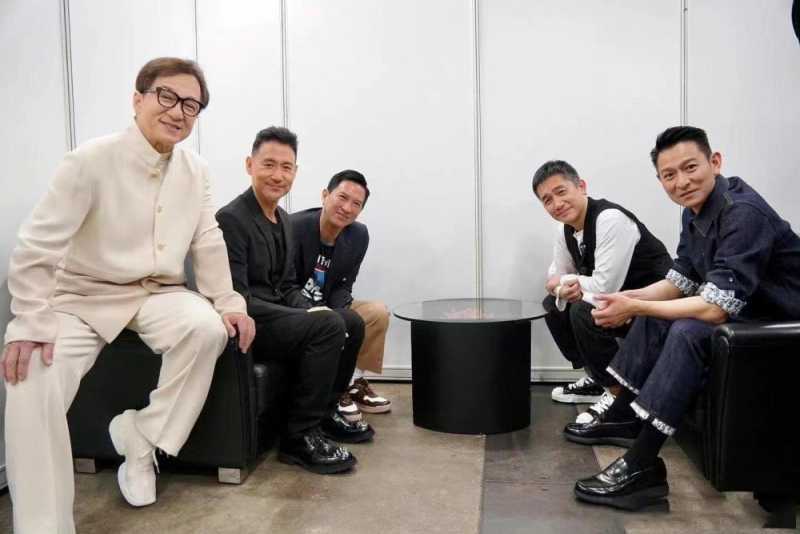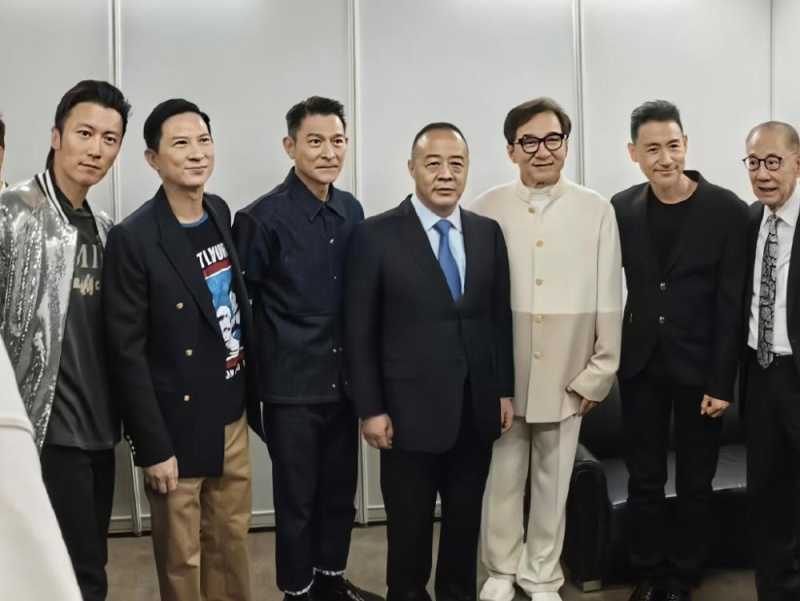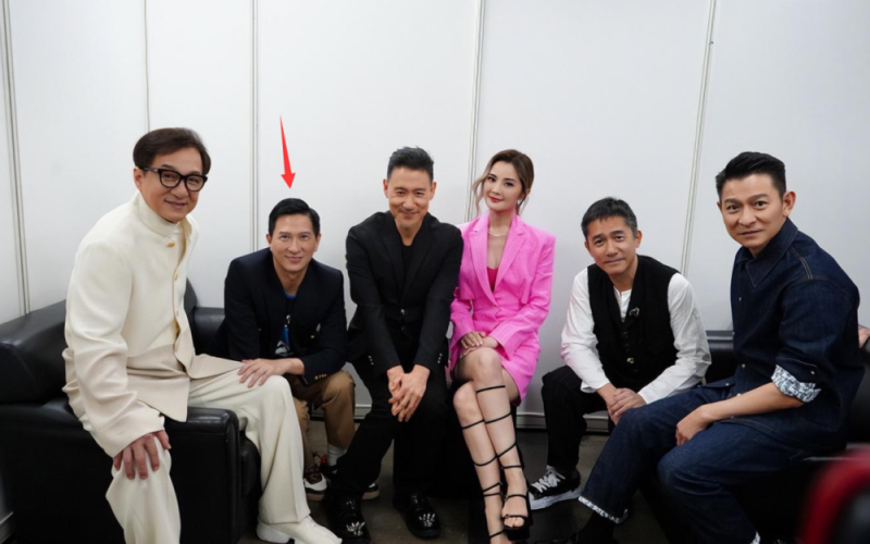 另外现场还有一个颇为有趣的场景,在大合影中大家并没有看到张家辉的身影,可他本人却与成龙、刘德华、梁朝伟、张学友、谢霆锋在后台同框了。