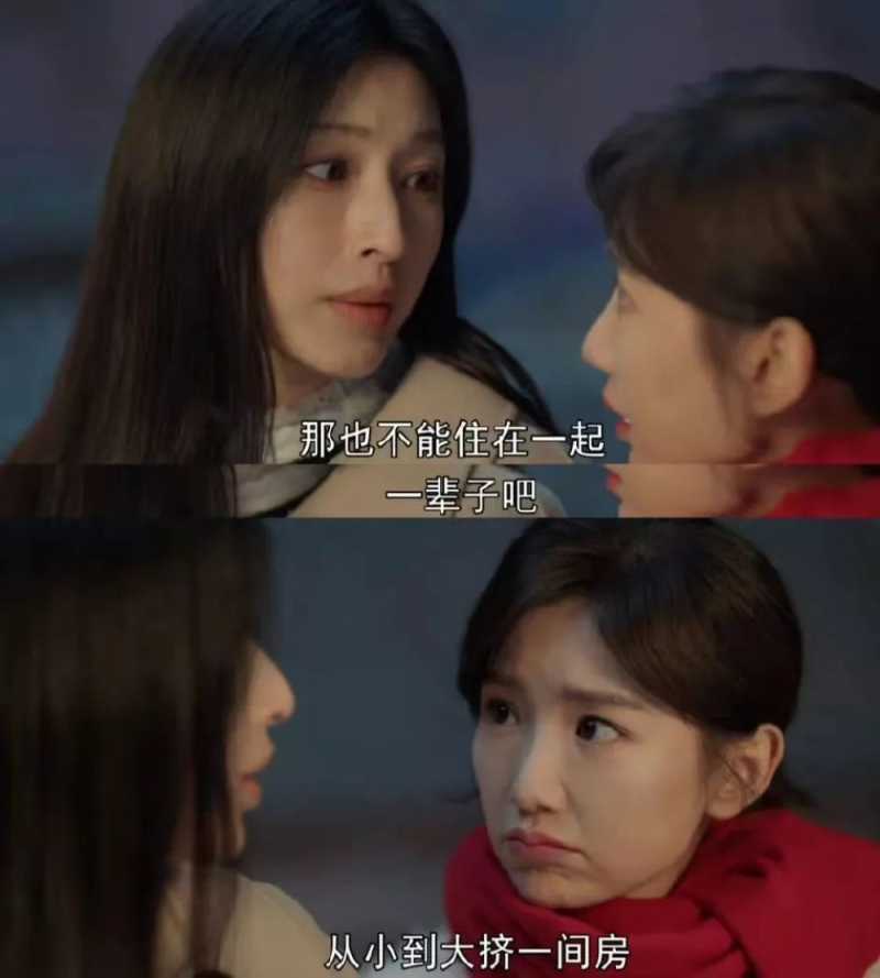 张俪饰演的姐姐孙心想要住进高楼大厦里,不想要一辈子住在四合院里,也不想一辈子和妹妹“挤”一个房间,可能大家心中的“挤”是那种一转身就面贴面的狭窄空间,是姐妹俩一张床或者上下床。