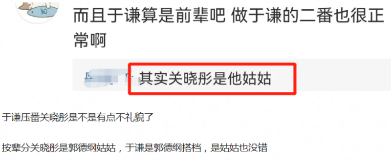 结果这句话,引来了粉丝笑话似的辩驳:“其实关晓彤是于谦的姑姑。”