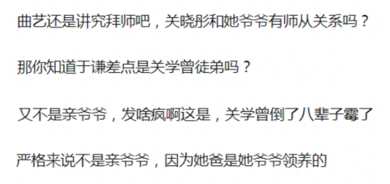 一是关晓彤不算是关学曾的亲孙女,她爸爸都是只是关学曾领养的;二是曲艺辈分讲究拜师,关晓彤跟他爷爷的师从毫无关系......