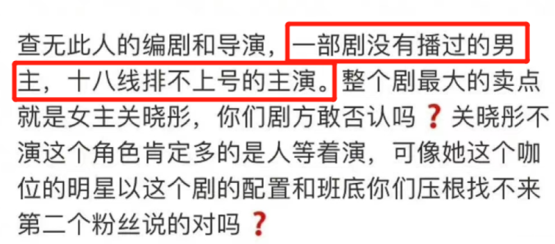 在粉丝口中,剧方已经十恶不赦:“你们竟然敢让21年戏龄,有110多部作品厚度,最年轻的白玉兰获奖者关晓彤做二番!”