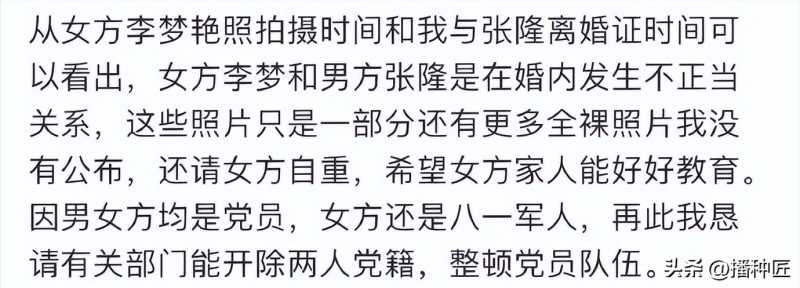 张隆前妻说,李梦多次一丝不挂与张隆视频,诱惑张隆与她发生不正当关系。