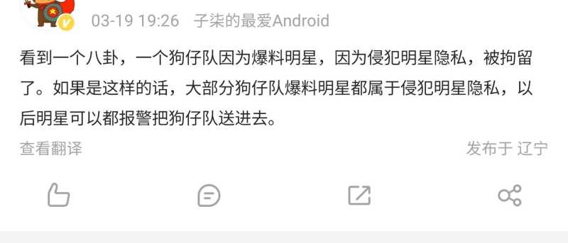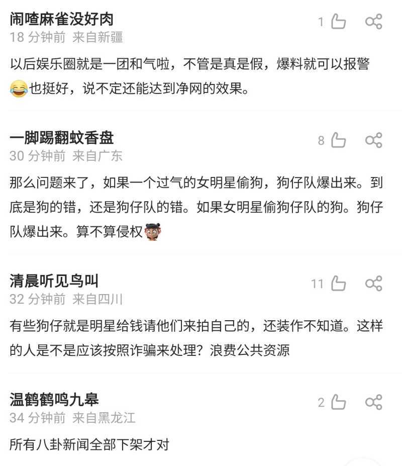 当然,对于狗仔被抓的事情,大部分网友都是很开心的,毕竟狗仔爆料他人隐私获取流量和收益,本身就是不算太道德行为,哪怕狗仔曝光明星“丑闻”后,算是某种程度上的“为民除害”,但在法律层面上,狗仔的行为还是违法了。