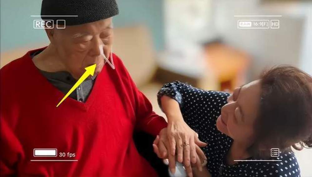 于洋老师身穿大红色毛衫,因为年事已高,于洋老师的身体状况出现了问题,可以看到他的鼻子里插着管子,看上去精神萎靡,眼神略显呆滞,病床前还有不少治疗仪器,想来也是因为父亲的健康告急,于静江才火速回国照顾,她近期的定位显示人在北京。