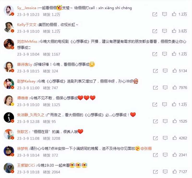 如今孙俪的新剧《心想事成》即将上线播出,于文文、刘恋、唐诗逸、谭维维、张歆艺等一众参加过《乘风破浪的姐姐》的女明星纷纷为孙俪打call,可见如今孙俪的事业一片大好。