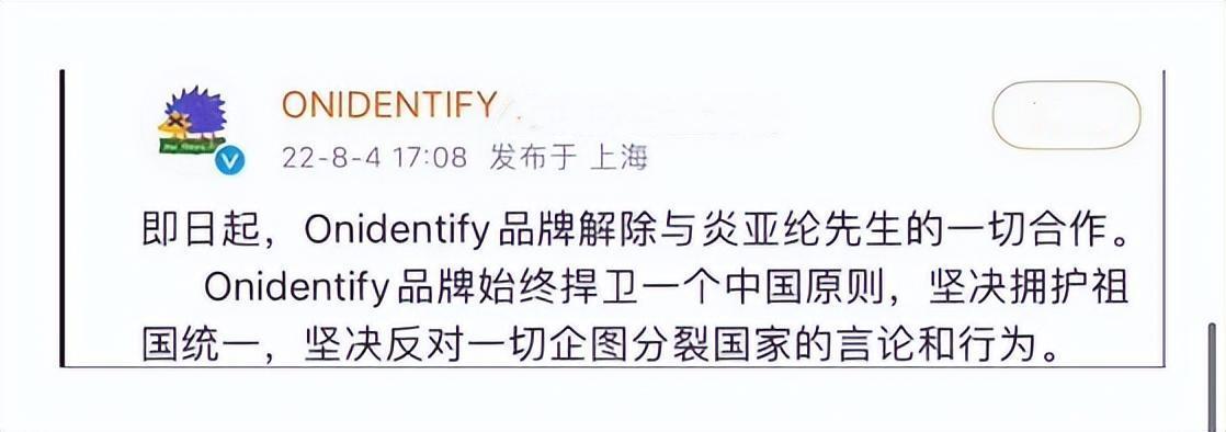 自己和自己的品牌宣布解约,这大概就是如今娱乐圈独一份的殊荣吧。大多网友猜测,炎亚纶这是知道自己没有办法在大陆赚钱就自导自演了这一出戏,他虽然被大陆封杀和抵制了,但是他的品牌还要赚钱。