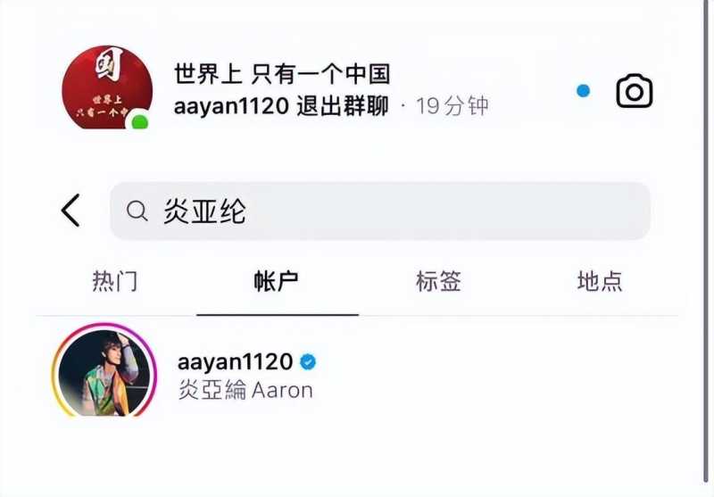 还光明正大地退出了他的粉丝群,原因竟然是他的粉丝为了帮他正名一下,就把粉丝群名改成了“只有一个中国”。炎亚纶退群的时候,粉丝们还在想办法帮他维护形象,直到他们发现炎亚纶已经退出群聊才停止。