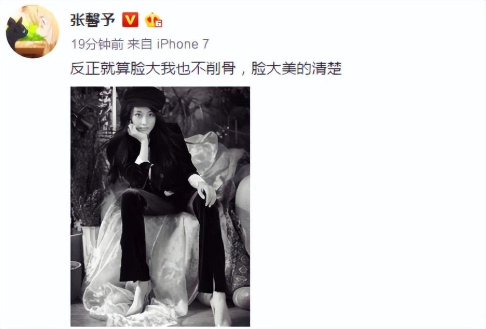 张馨予还曾专门发微博回应整容一事,明确表示自己仅仅是打了瘦脸针,即便脸大也不会削骨。