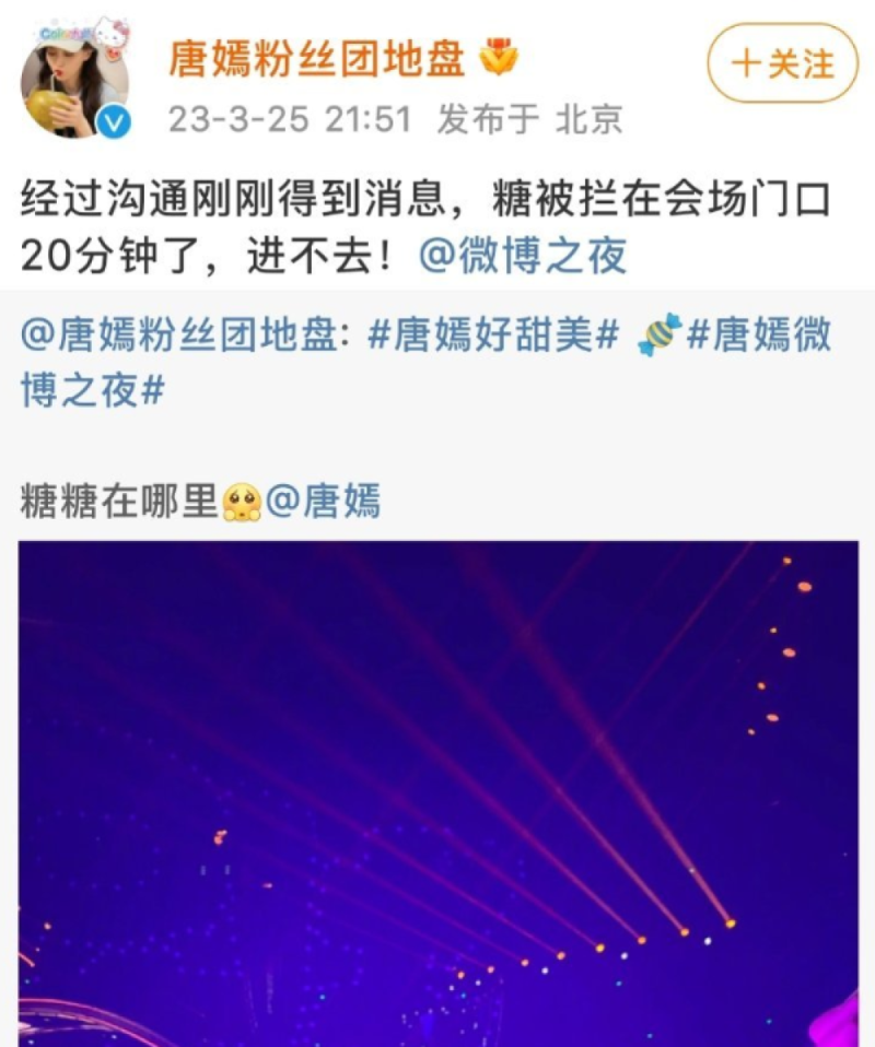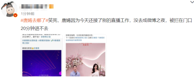 本以为直播活动结束后,唐嫣会立即返回微博之夜的会场,可没想到因为她的迟到导致被拦截在场外整整20分钟,目前的情况是唐嫣进不来了,只能说,工作室作出这样的工作安排也是令人蛮无语,就很离谱。