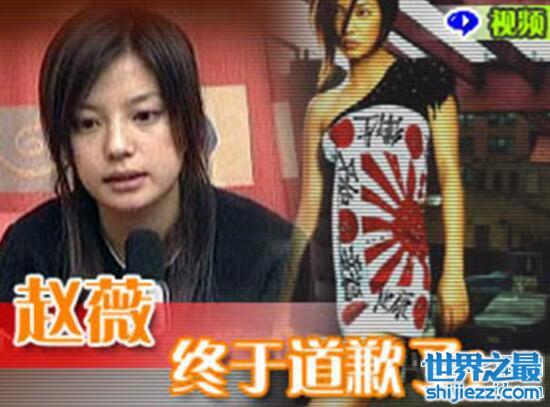 赵薇事件从来就没断过,赵薇军旗装事件事情的开始是,2001年年初,《时装》杂志纽约工作室的负责人邹雪找到了赵薇为《时装》拍摄封面。赵薇爽快的答应了杂志的请求,几天之后,杂志社就在纽约城区一片工地旁边开始了拍摄。而后来被指为“日本军旗装”的那件长裙是一个不知名的美国年轻设计师RichieRich的作品。拍摄那天很冷,但是赵薇很敬业的穿着薄薄的衣服和两个男模特站在寒风里。