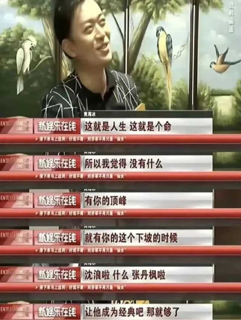 昔日的光景虽然让人怀念,但毕竟时间都在向前走,黄海冰坦言人生就是这样,有顶峰就有低谷,看来他自己已经释怀了。