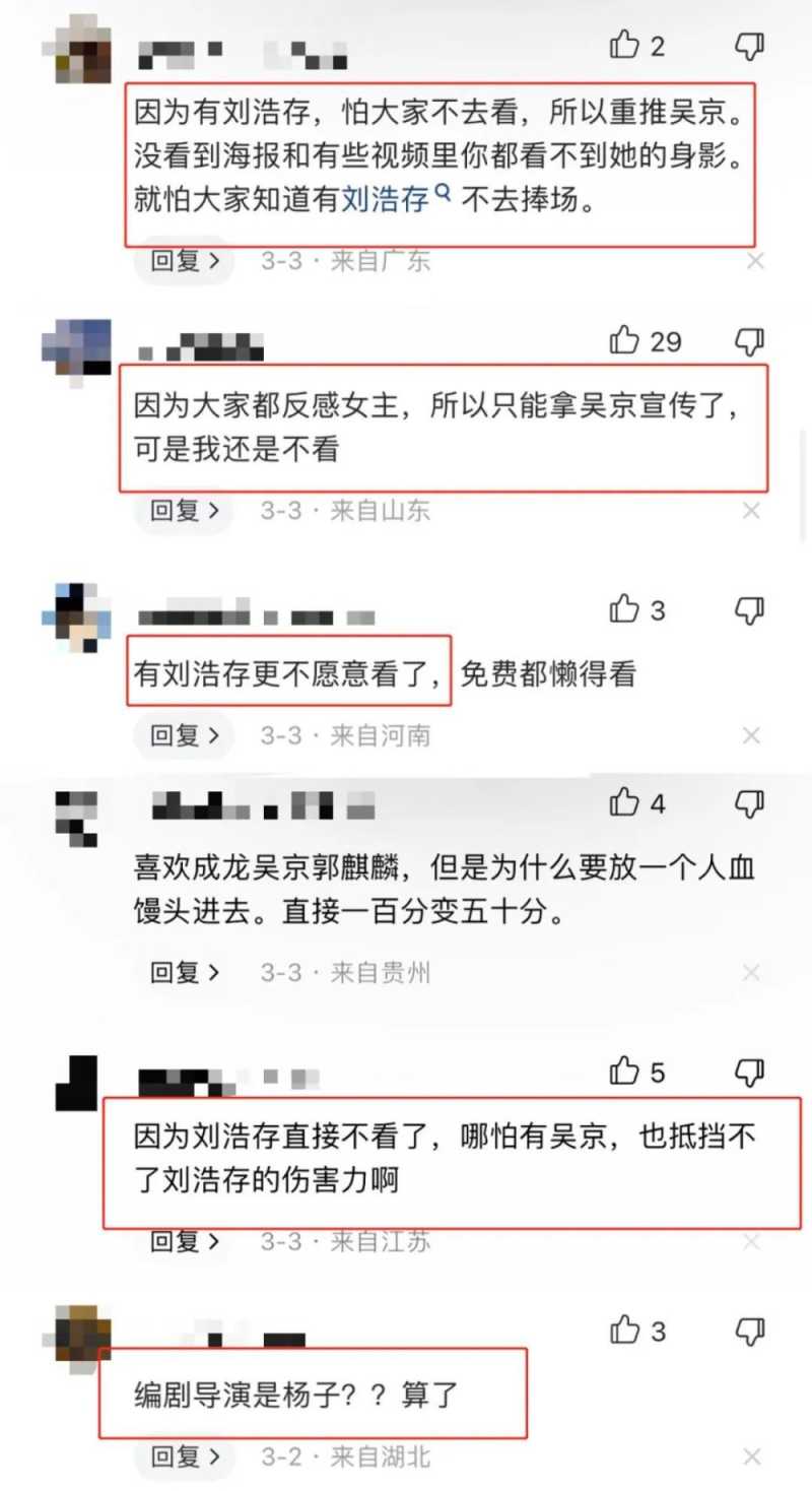 但网友们的眼睛是雪亮的,纷纷表示,主演有刘浩存,导演又是杨子,吴京在这部电影中,恐怕就是“打酱油”的,不太愿意为他去专门看《龙马精神》。