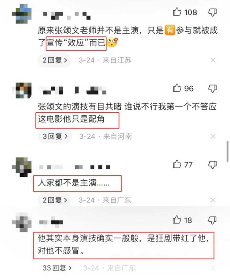 电影上映后,就有观众觉得剧情很普通,这也“连累”了张颂文,毕竟片方宣传太猛,有人认为电影里他也是主演。