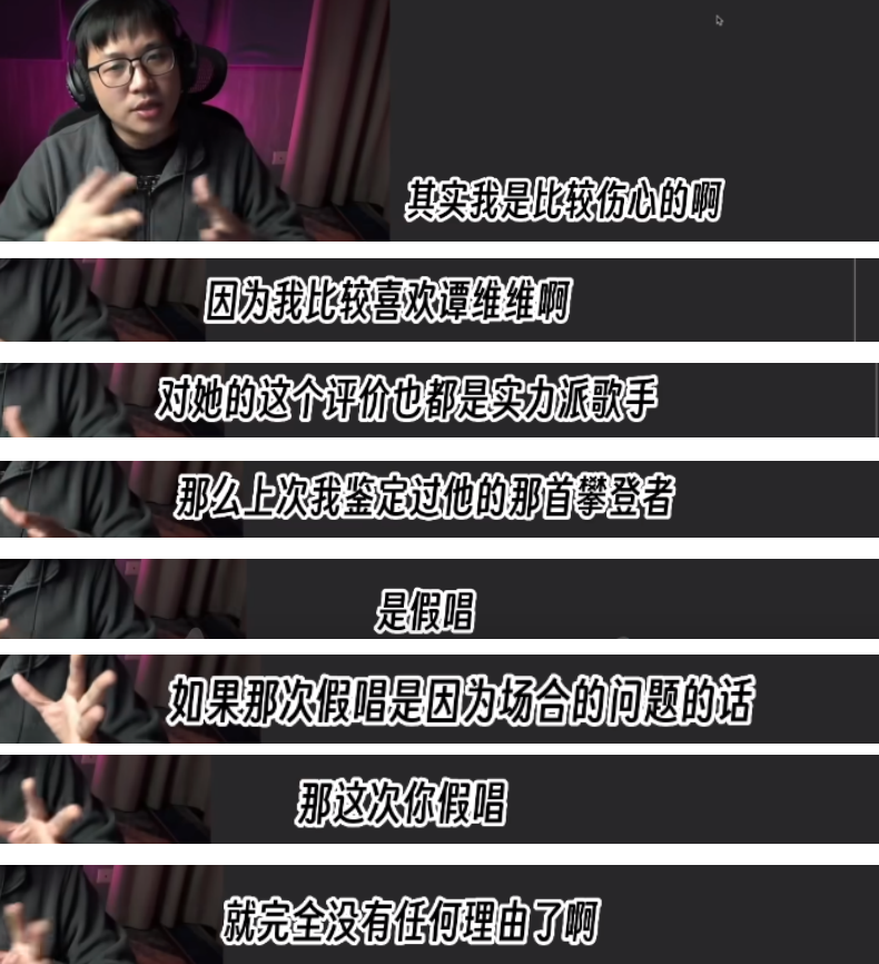 谭维维,就更没解释的余地了,因为她是独唱,不存在将就谁,她假不假唱,全看自己的选择。