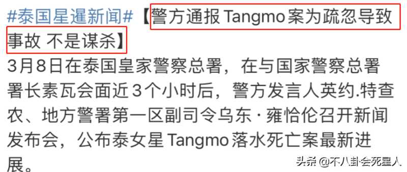 在今年2月份,有消息传出泰国女星Tangmo在乘船游玩的时候落水而亡,同行的5人称她是去船尾小解的时候不慎坠落的。