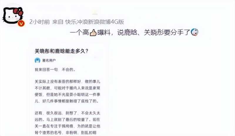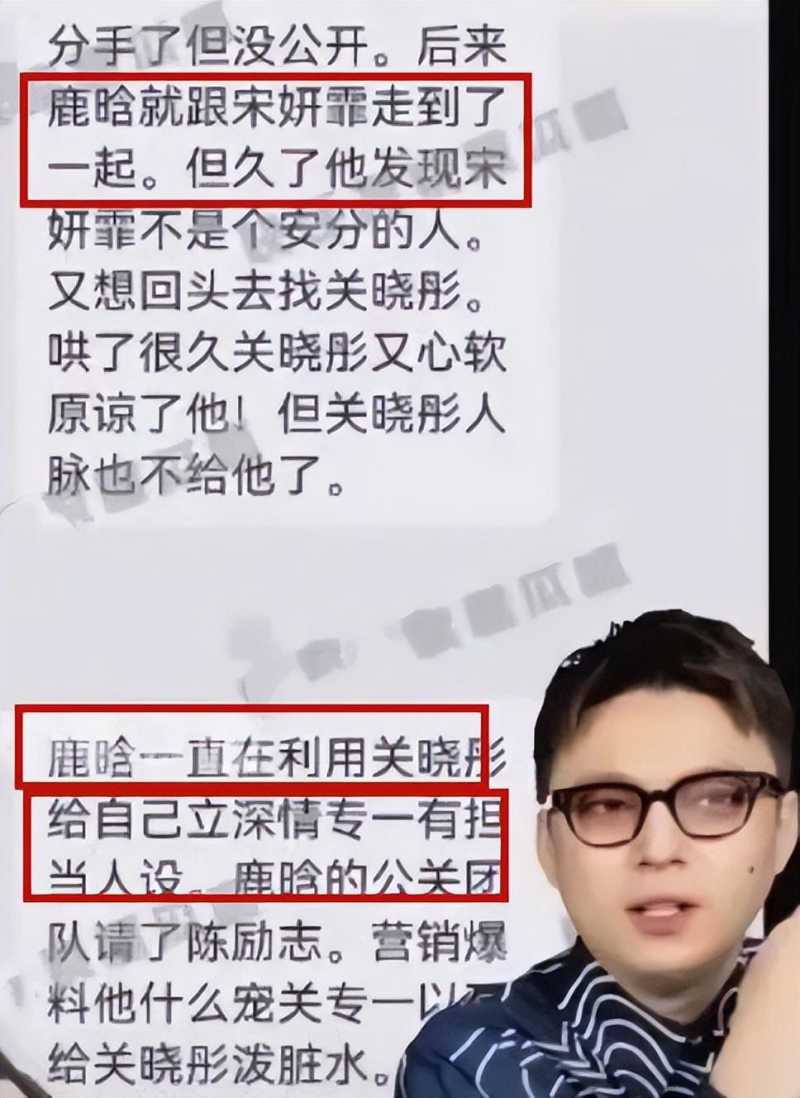 ——是一份截然相反的爆料,爆料中想要分手的人变成了关晓彤,恶人也变成了关晓彤,还说她想要靠分手获得同情所以想方设法泼鹿晗脏水,其中一个操作就是塑造他的渣男人设。