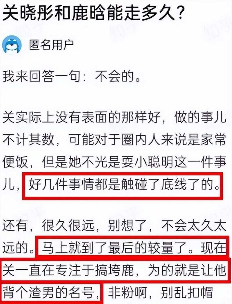 有人翻到了2022年8月就有人爆料鹿晗和关晓彤已经分手,声称原因就是鹿晗给关晓彤戴绿帽子,更是点名了不止一位女星,其中有两个名字也是很眼熟,最后还来了一句:关晓彤不笨,她绝对会报复!