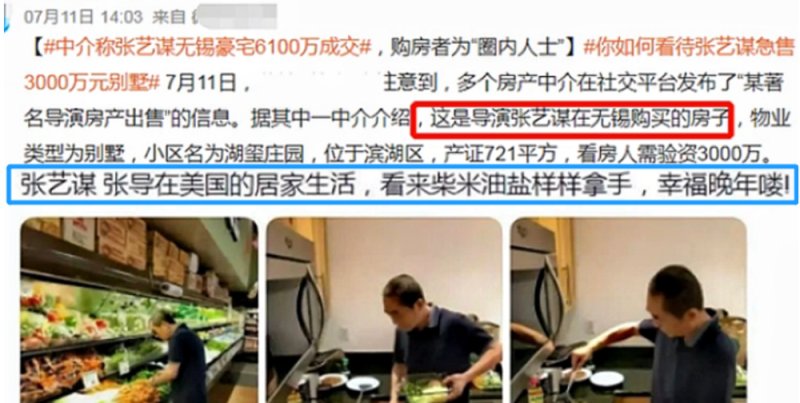 加上当时张艺谋家有一栋临湖别墅在出售,所以网上关于他“买房移民”的传闻愈传愈烈。