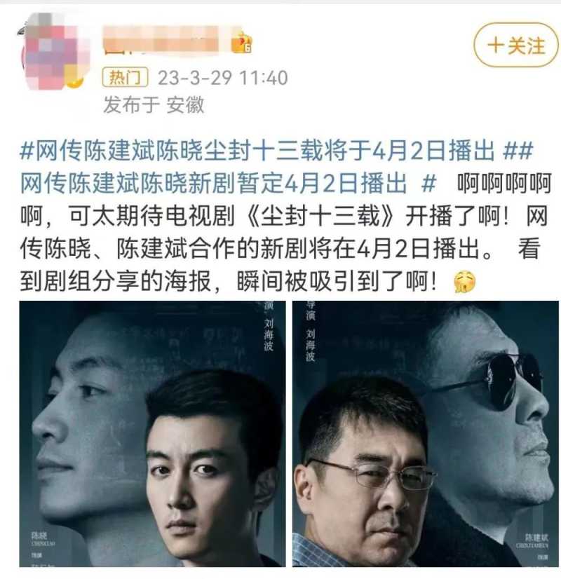 4月的悬疑剧可不止这一部,在刑侦悬疑剧《他是谁》热度不减的情况下,由陈建斌、陈晓主演的《尘封十三载》网传定档4月2日。