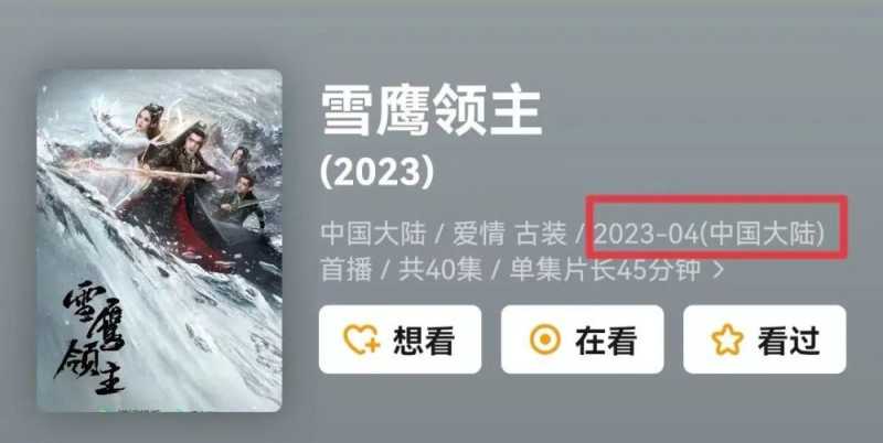 许凯和古力娜扎的新剧《雪鹰领主》在某平台上标为了4月播出,估计过不了多久就会官宣定档。