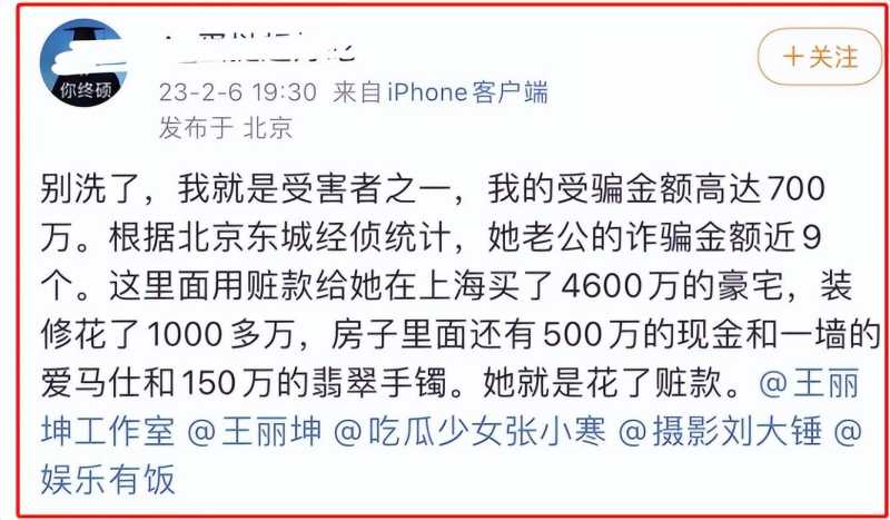 被诈骗的受害人在网上公开发文表示,詹姓商人诈骗的钱都花在了王丽坤身上,不但给她买豪宅豪车,珠宝翡翠奢侈品等更是源源不断的送过去,生活非常奢侈。