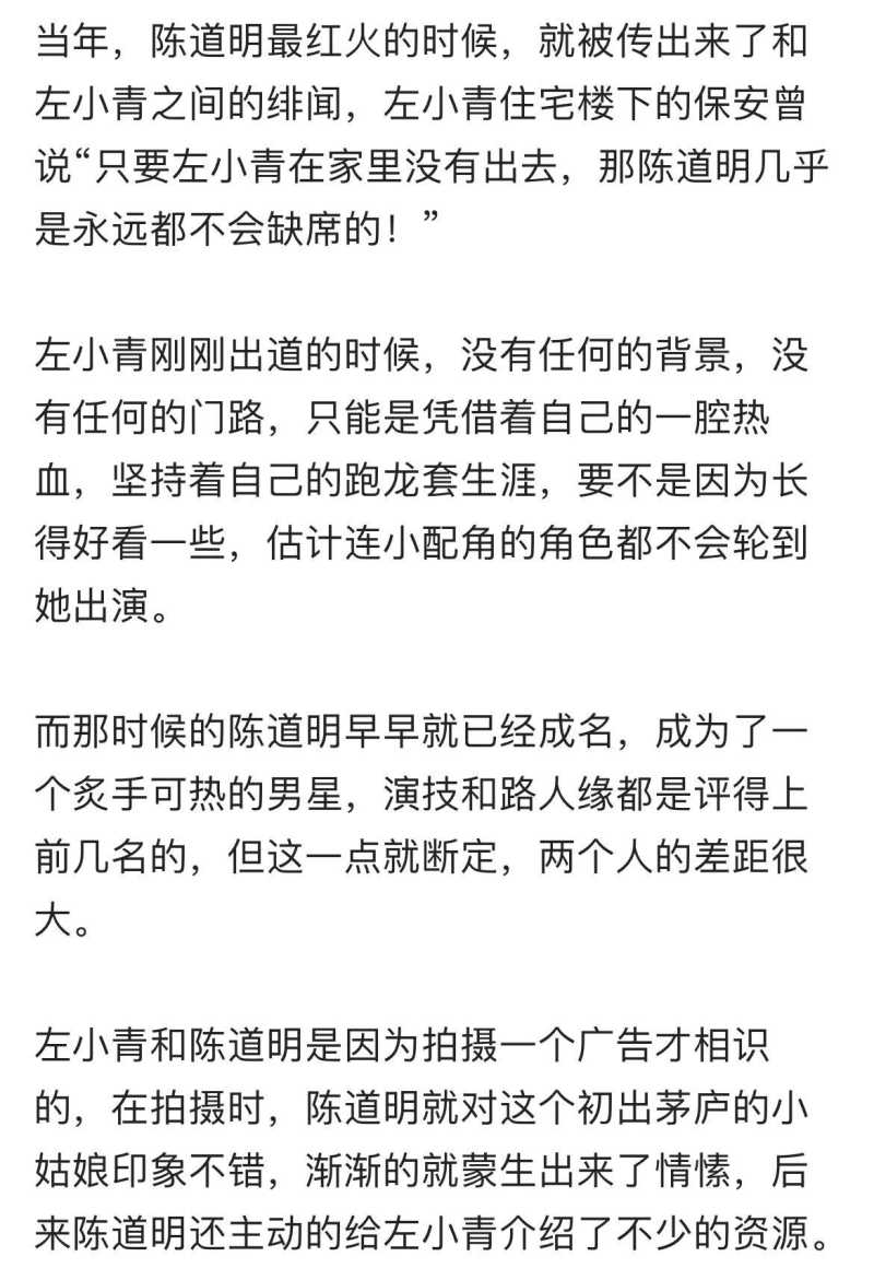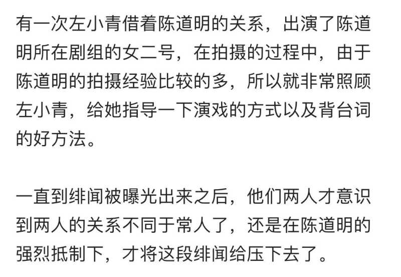 更重要的是,陈道明还当众说过左小青和他的妻子很像的话。