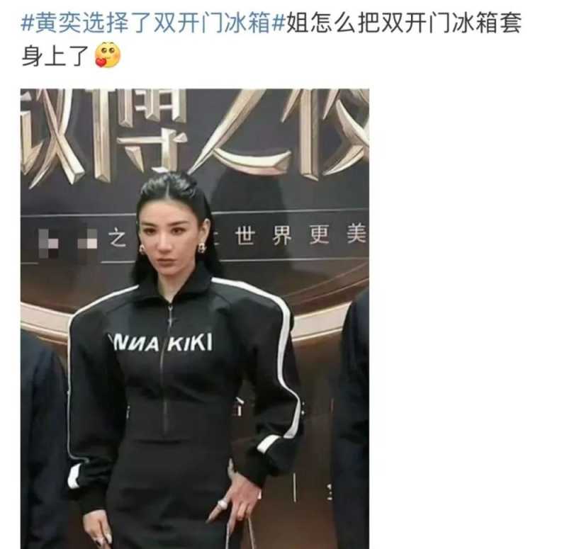 她参加前段时间的微博之夜,自称在十套礼服里纠结,最后造型却被吐槽上了热搜。有人说她穿得像“双开门冰箱”,还有人说像“橄榄球运动员”。
