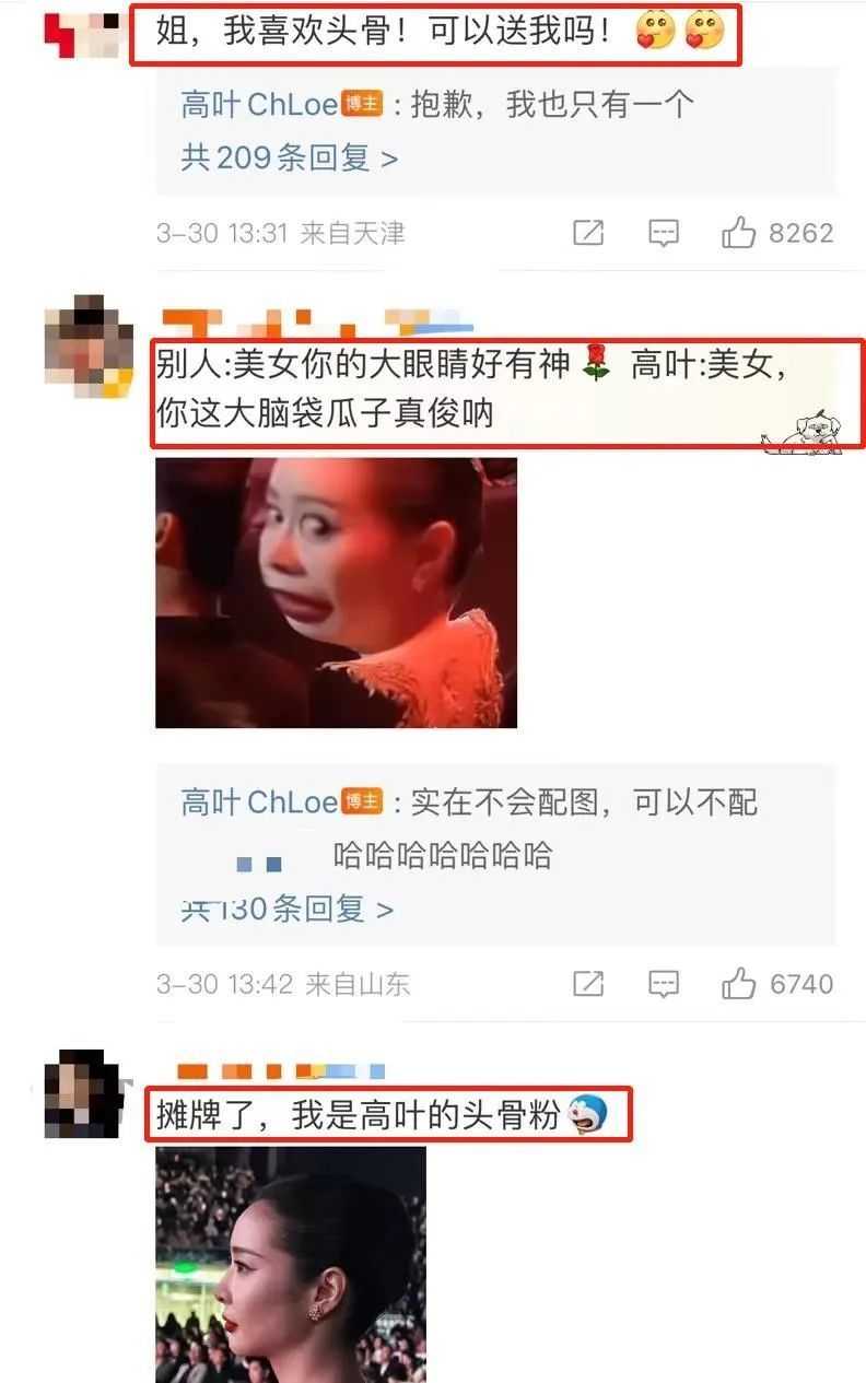 粉丝们也在评论区“整活”,表示想要她的头骨,还有粉丝模拟起高叶被夸,“大脑袋瓜子真俊”。