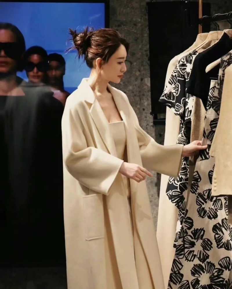 不光是稳重的黑色和明艳的黄色,李小冉最近在北京参加活动,穿上杏色大衣,同样优雅又不失性感。