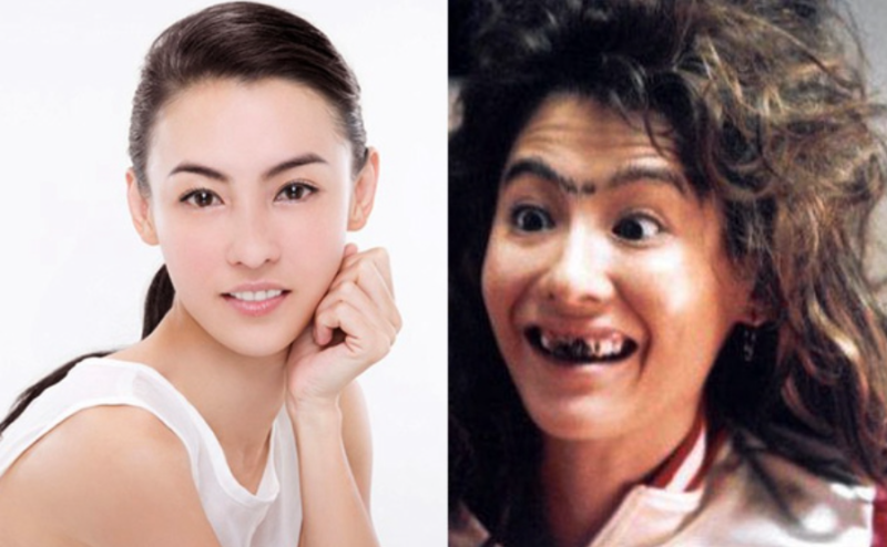 另一个女神张柏芝扮起丑来那也是绝不含糊的,连心眉加黑色龅牙,要多丑有多丑,脸上的表情也夸张怪异,女神是一点儿偶像包袱都没有啊!