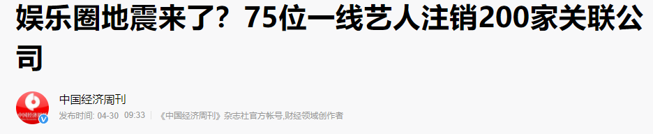 据悉,这些明星加起来有75位,共计注销了200家关联公司。