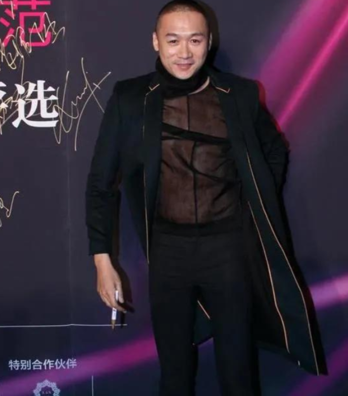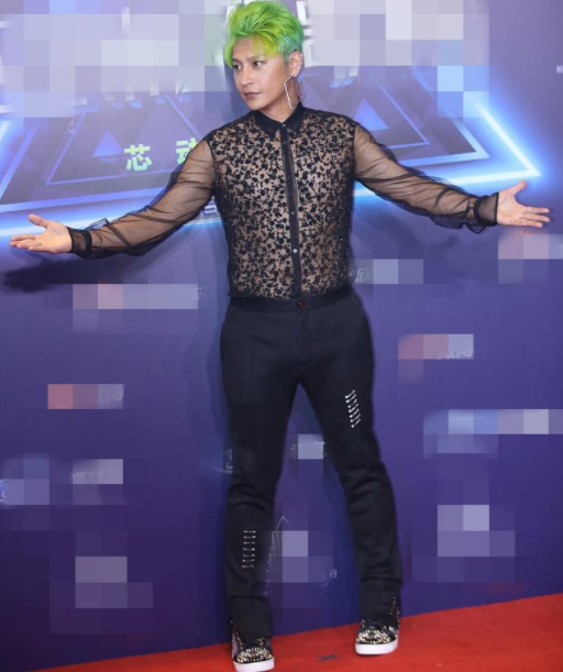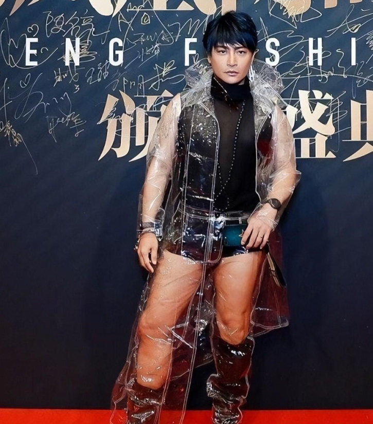 不知道他从哪里搜罗来那么多奇装异服,每一件都刷新大众的眼球,那几年,陈志朋尤其“钟爱”透视装,黑丝透视的更常常穿。
