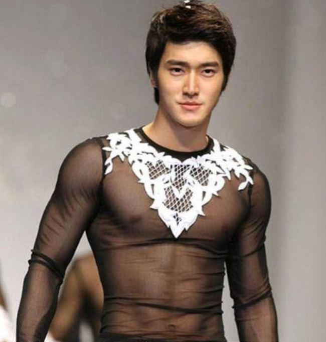 在性感上翻车的还不止国内的男星,翻看国外男星大胆穿着,更是惊掉下巴,韩国男星崔始源在某场走秀中,就尝试了多种透视衣。