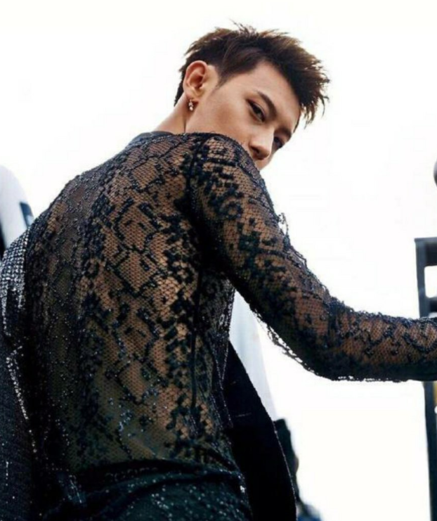 但黄子韬的“性感黑丝”,就让人有那么几分接受无能。因为他的镂空衣,还是蕾丝花边的。