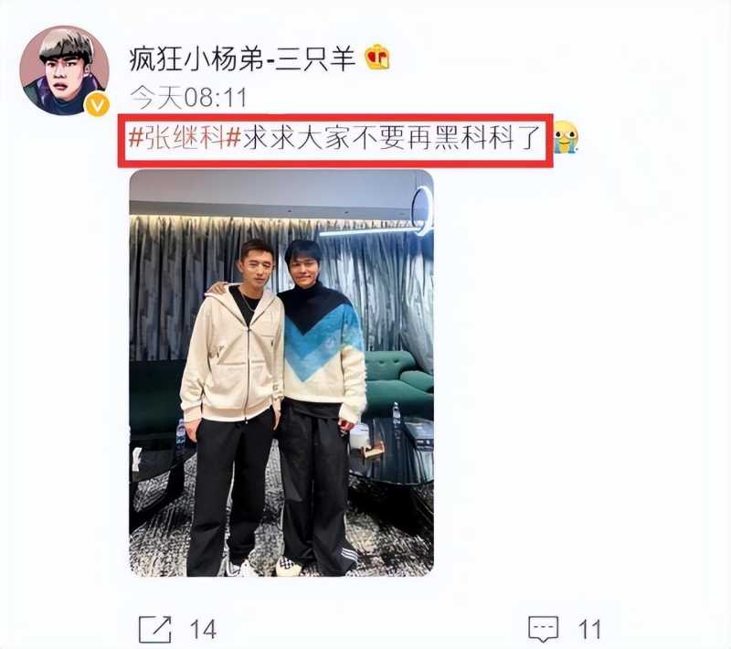 只是外界舆论并没有因工作室的声明而消停,反而有愈演愈烈的趋势。而作为昔日一起合作直播带货过的第一网红疯狂小杨哥,也在第一时间站出来力挺张继科称:“求求大家不要再黑科科了!”