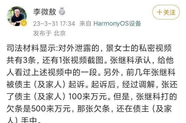 本以为瓜到这里就结束了,财经记者李微敖认证,张真的把三段视频发给别人看,来源是司法材料。