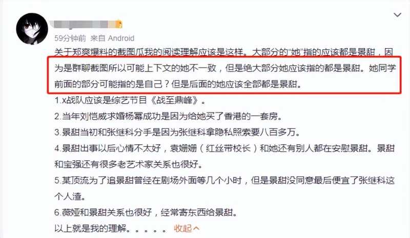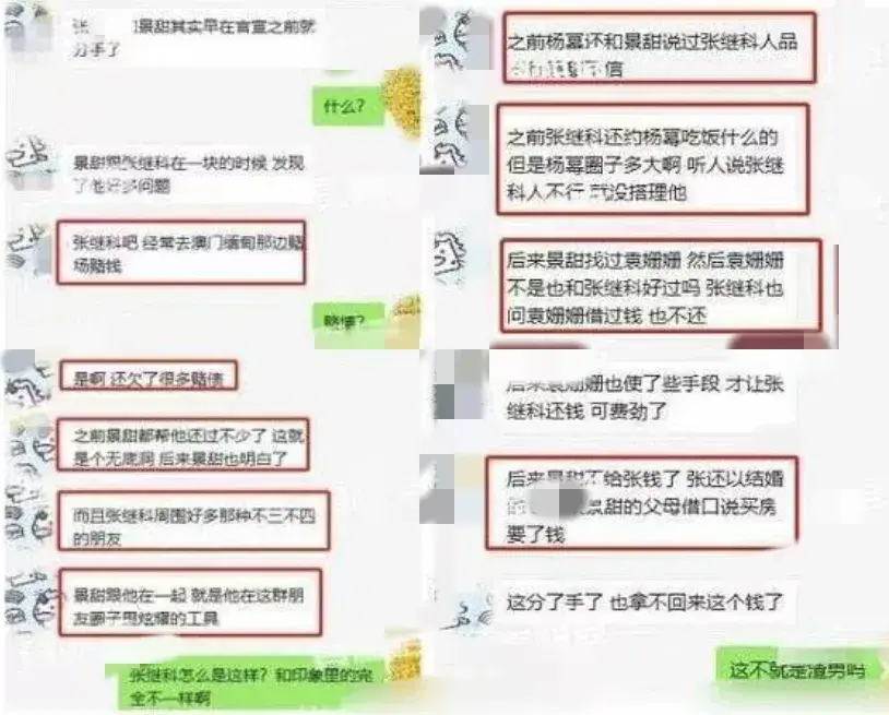 大量的聊天记录、言语、知情人曝光的材料以及景甜以前的言论等等,所有矛头都指向了张冠军。