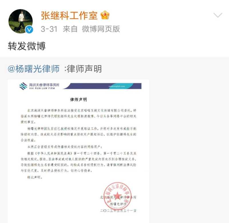 如果说330之前是小规模传播,那经过李微敖的板上钉钉的发言,331张继科事件已经属于中等传播了,张继科工作室也从声明升级成律师声明,别问问就是要告!
