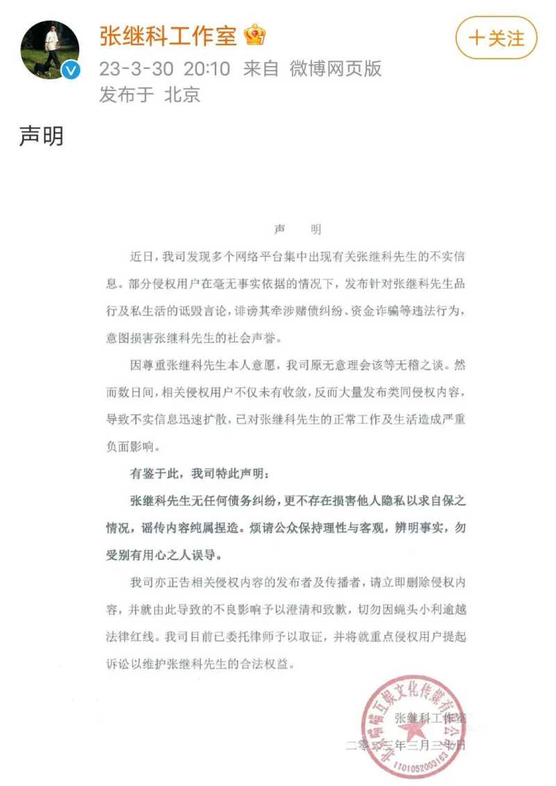 舆论小规模发酵后,张继科工作室火速出击,表示张继科无任何债务纠纷,不存在损害他人隐私自保的情况,这辟谣速度可以说很快了!但是无任何债务纠纷这话一出口,就不被相信了,张继科联合创立的奶茶品牌“猴子的救兵”就让很多信任他的加盟商血本无归!