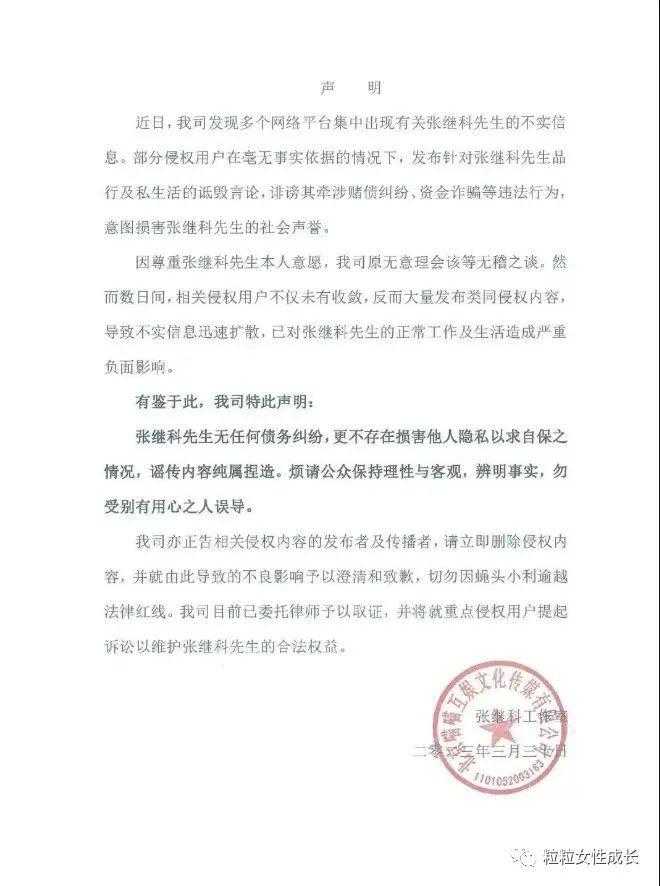 张继科方的工作人员贴出声明:
