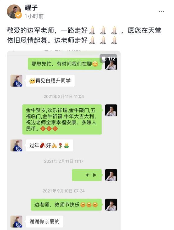 据该网友透露,边军老师走得相当突然,评论区也有学生表示边老师上周还在给大家上课,如今却与其最爱的学生们天人永隔,将生命永远定格在了65岁。