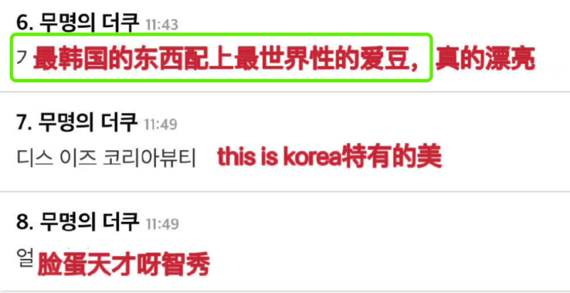 在韩国粉丝的评价里,也说是最韩国的文化配上最世界性的爱豆。他们这种故意模糊韩国文化与中国文化的行为,实在让人汗毛倒竖。