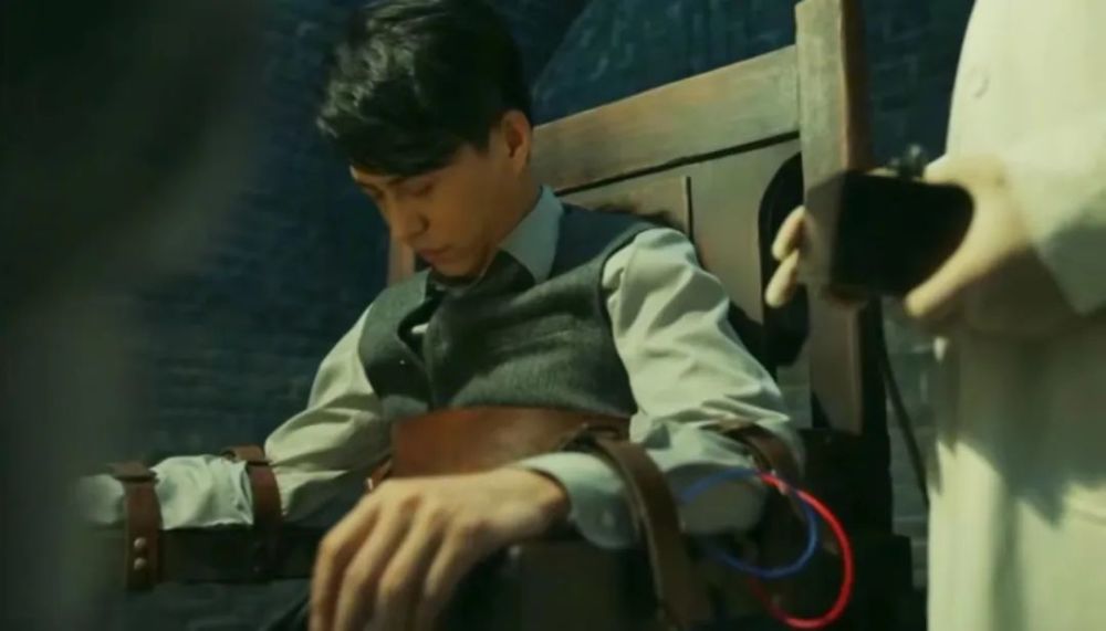 而且审讯的人也是一反常态,并不用水将他泼醒,而是等他自己慢慢醒来。当他微微睁眼,连话都没有说完,就遭到了电击,可是他只是晃动了几下身子,眼睛紧闭,眉头紧锁,双手甚至没有握拳,只是自然地平放,看起来没有多痛苦。