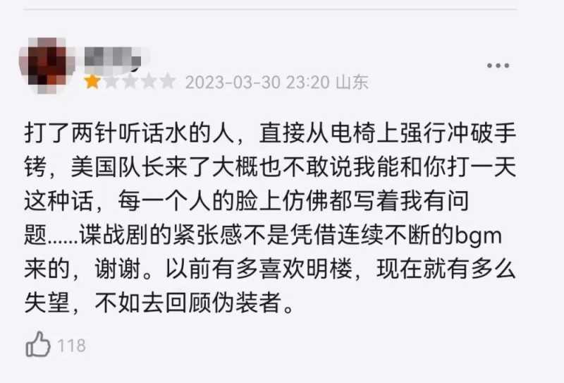 仅仅是一场酷刑戏,就将演员和“戏混子”的区别表现得淋漓尽致,剧组的态度、演员的演技都应该对观众负责,只有用心打磨才能做出品质好剧,而不是想着主演具备明星效应就能万事大吉了。