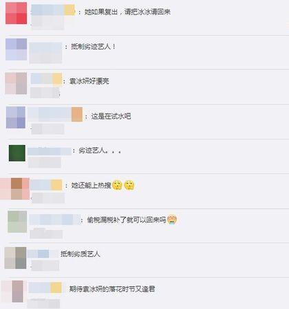 袁冰妍贴文一出,一度冲上微博热搜第一名,留言处也掀起两派争论,粉丝们相当期待回归,同时称赞其美貌:「我想看袁冰妍的剧!」、「袁冰妍好漂亮」、「期待袁冰妍的《落花时节又逢君》」,而另一派的网友则气愤表示,抗拒她复出萤光幕,「抵制劣迹艺人」、「她如果复出,请把冰冰请回来」、「邓伦是不是也能复出?」