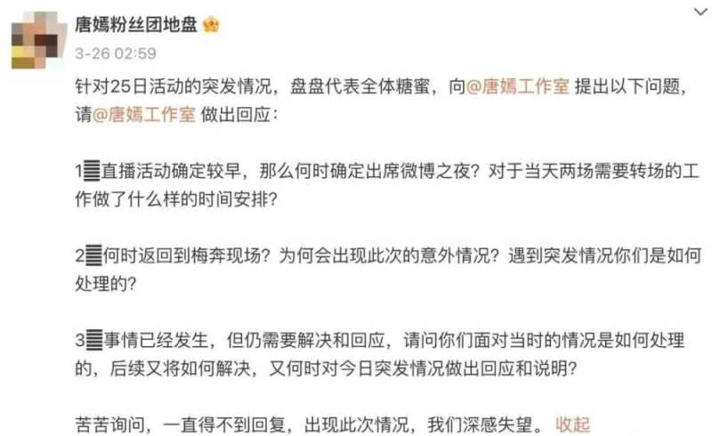 粉丝呢,也是心疼姐姐心疼得不得了,把矛头直指工作室,要求工作室给个说法,