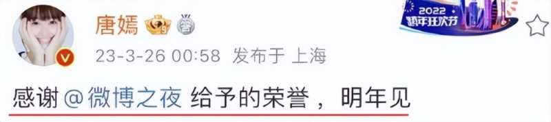 唐嫣吃了闭门羹也没闲着,一会儿忙着感谢平台,说期待明年见,