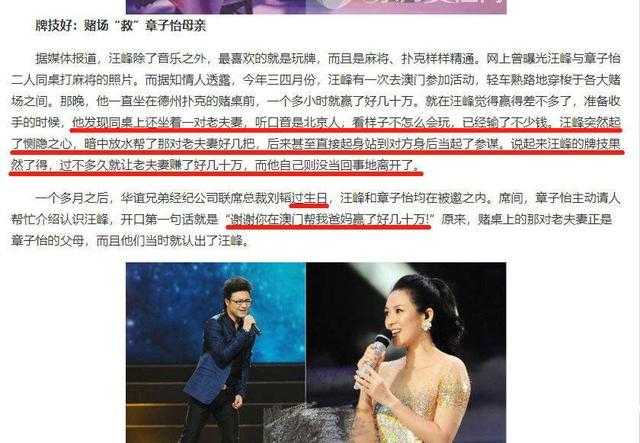 而且汪峰和章子怡的结缘,也是始于赌桌,当时很多媒体报道,汪峰在赌场上主动帮了章子怡父母的忙,助他们赢了几十万。