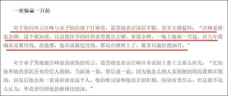 并称汪峰在她怀孕的时候就带她出去赌,一晚上输赢一万起,甚至有一次把钱都花完了,只剩30万。