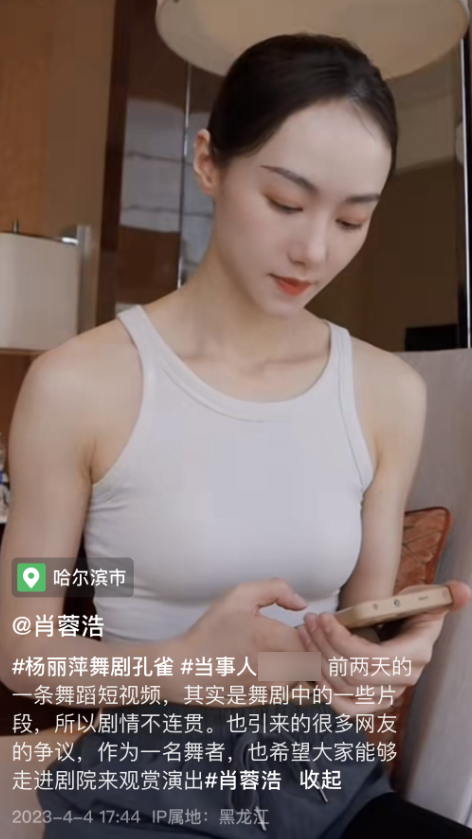 肖蓉浩还表示舞蹈是肢体语言的艺术,有一些网友不理解这种肢体接触,她解释说这些本应该在舞台上呈现的艺术被搬到社交平台上,难免会让大家觉得过于夸张,甚至难以接受。